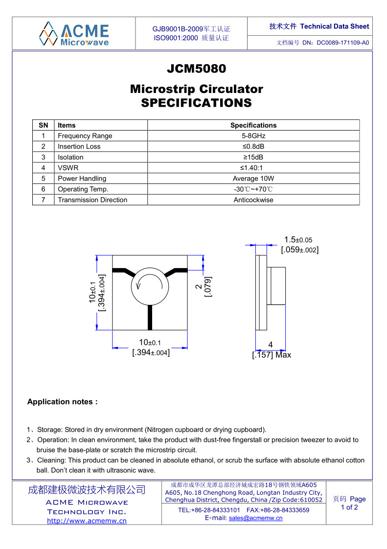 JCM5080(5-8GHz)_Microstrip Circulator(1)Release date:(2018-8-21) Number of clicks:573 |