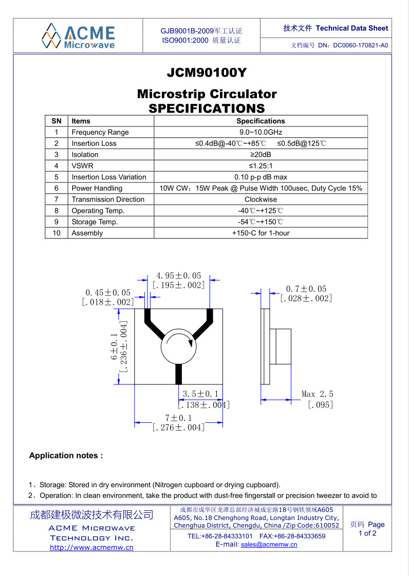 | Next chapter:JCM87105Y(8.7-10.5GHz)_Microstrip Circulator | |