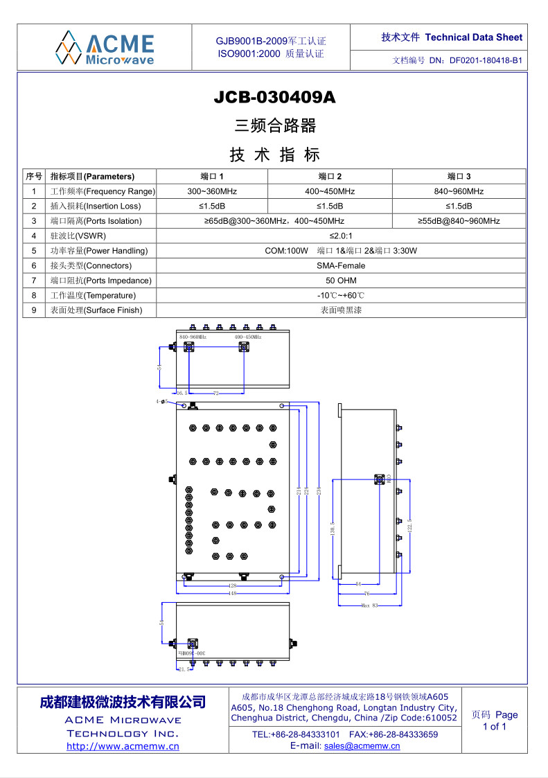 JCB-030409A_三频合路器Release date:(2018-8-21) Number of clicks:179 |