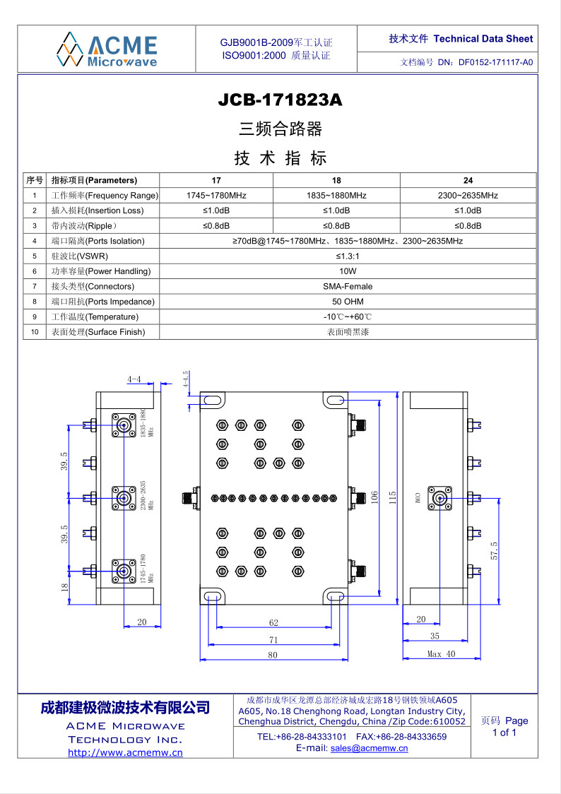 JCB-171823A_三频合路器Release date:(2018-8-21) Number of clicks:166 |