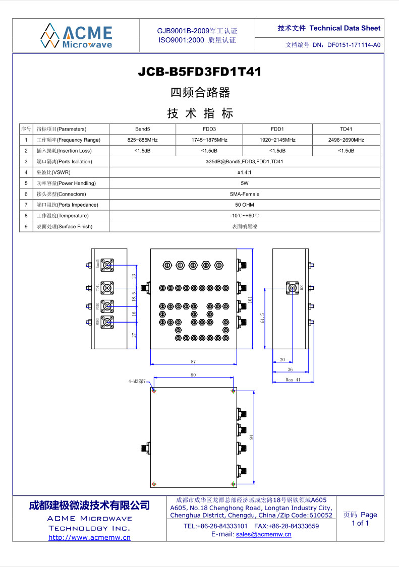 JCB-B5FD3FD1T41_四频合路器Release date:(2018-8-21) Number of clicks:550 |