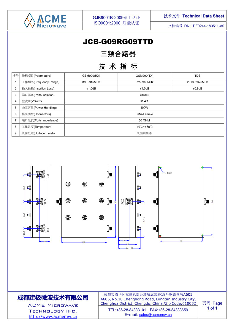 JCB-G09RG09TTD_三频合路器Release date:(2018-8-21) Number of clicks:595 |