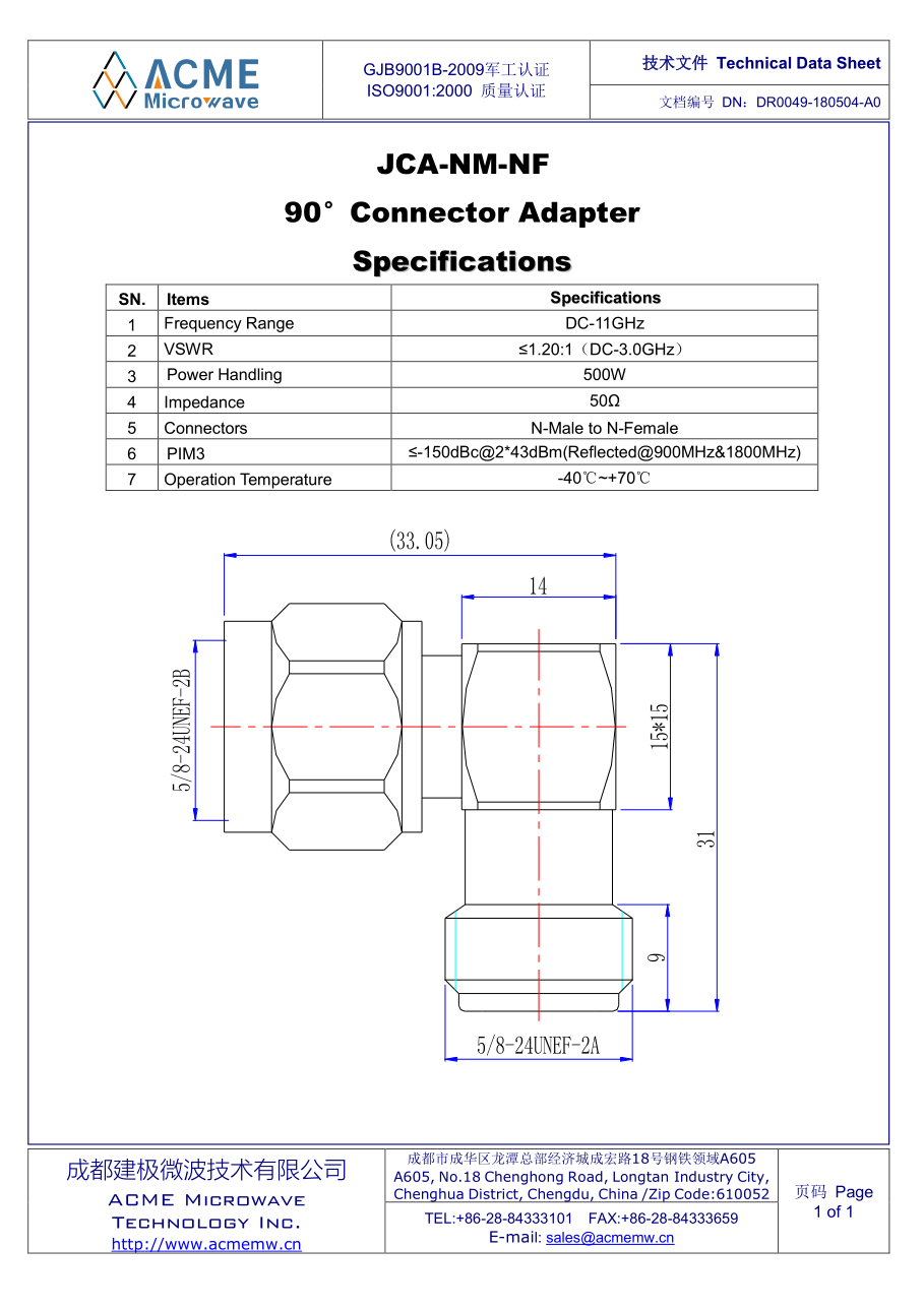 JCA-NM-NF_90°Connector AdapterRelease date:(2018-8-7) Number of clicks:608 |