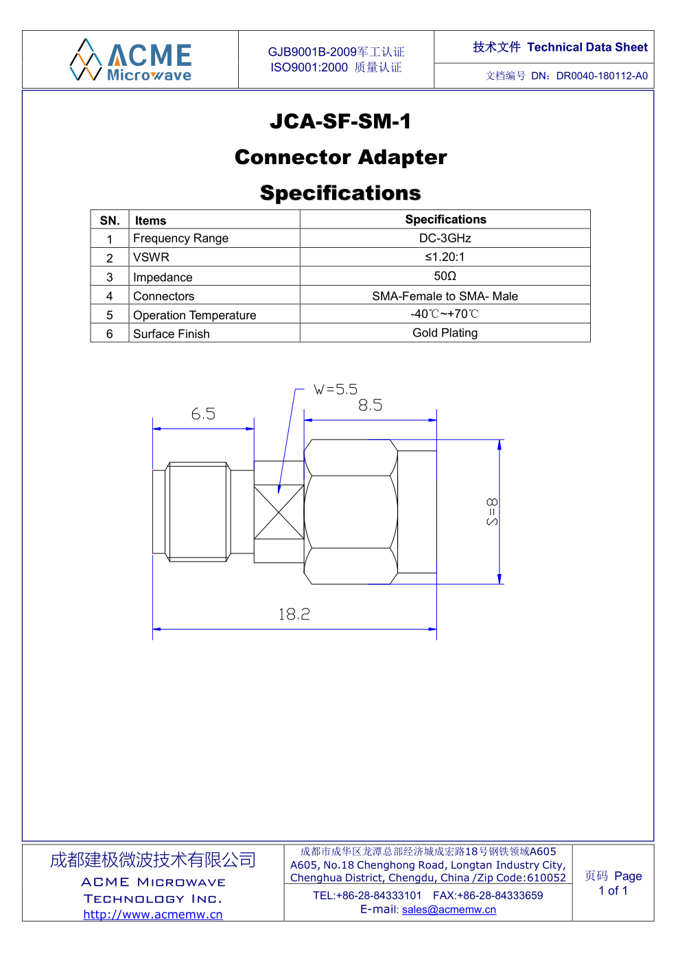 JCA-SF-SM-1_Connector AdapterRelease date:(2018-8-9) Number of clicks:593 |