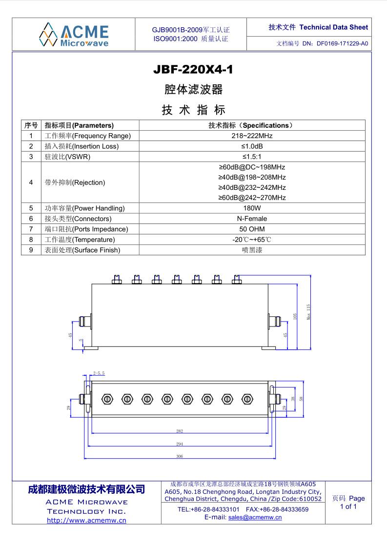 JBF-220X4-1_腔体滤波器Release date:(2018-8-21) Number of clicks:517 |
