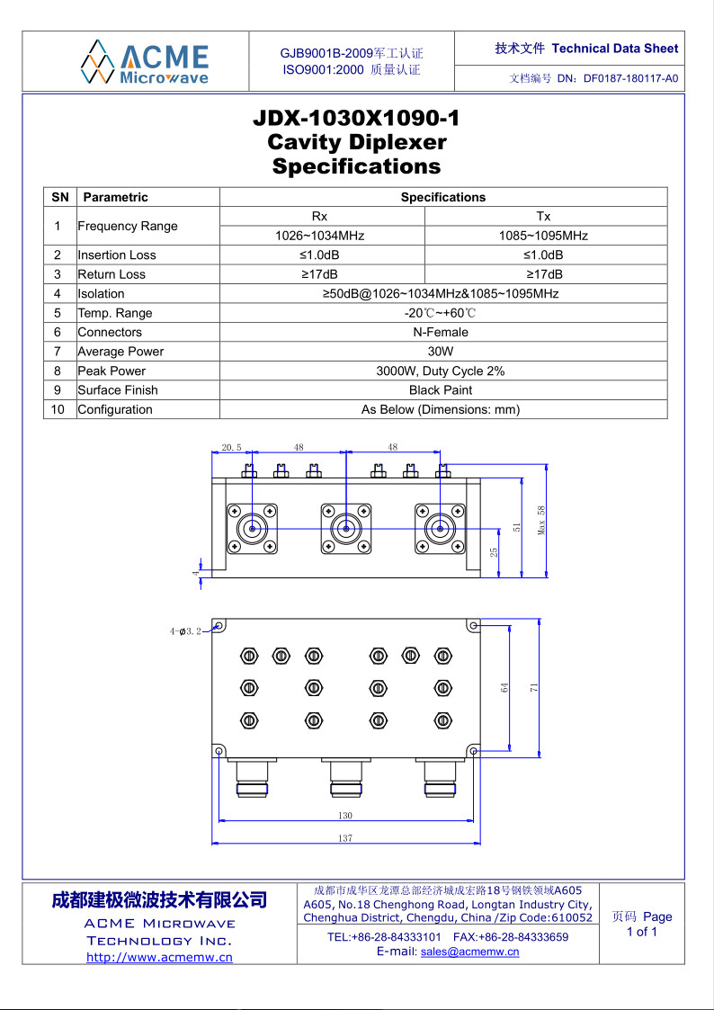 | Next chapter:JDX-900X1800-1_Cavity Diplexer | |