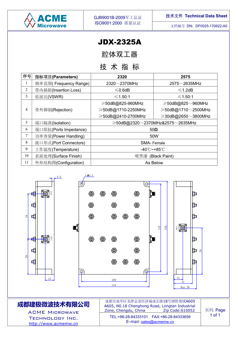 JDX-2325A_腔体双工器Release date:(2018-8-21) Number of clicks:567 |