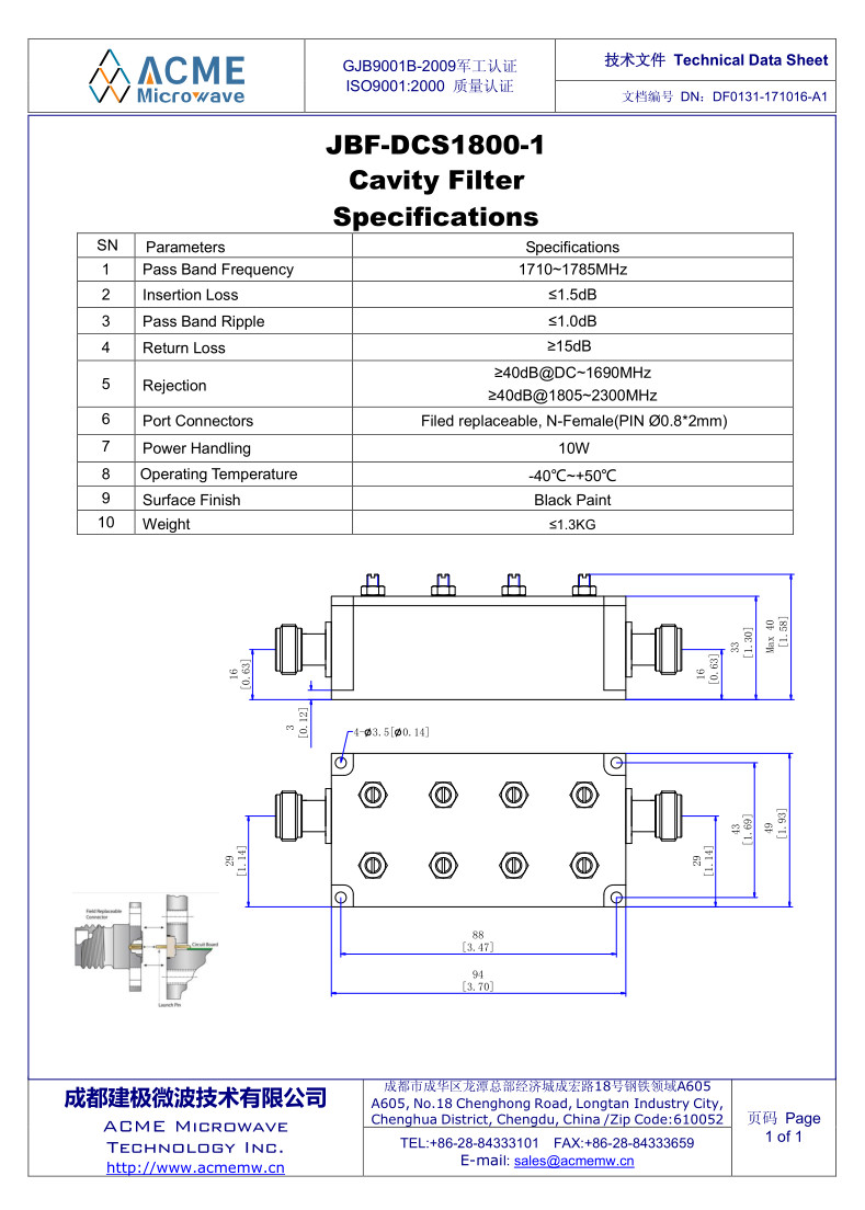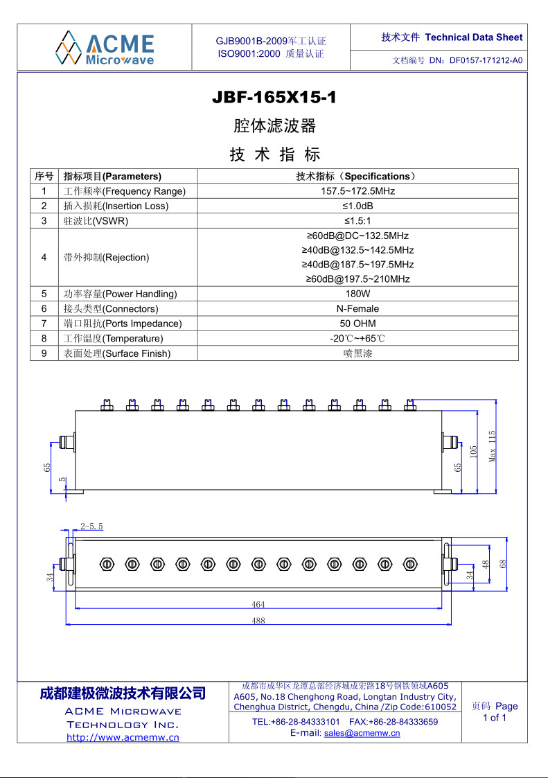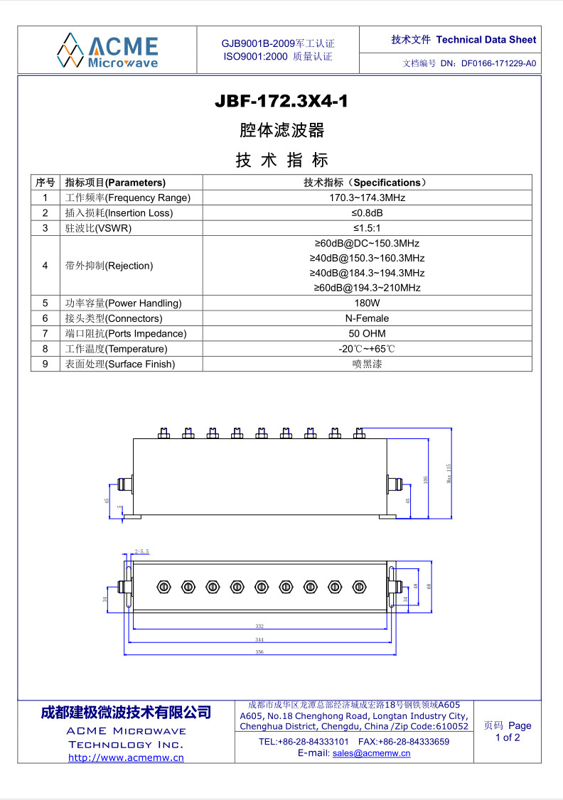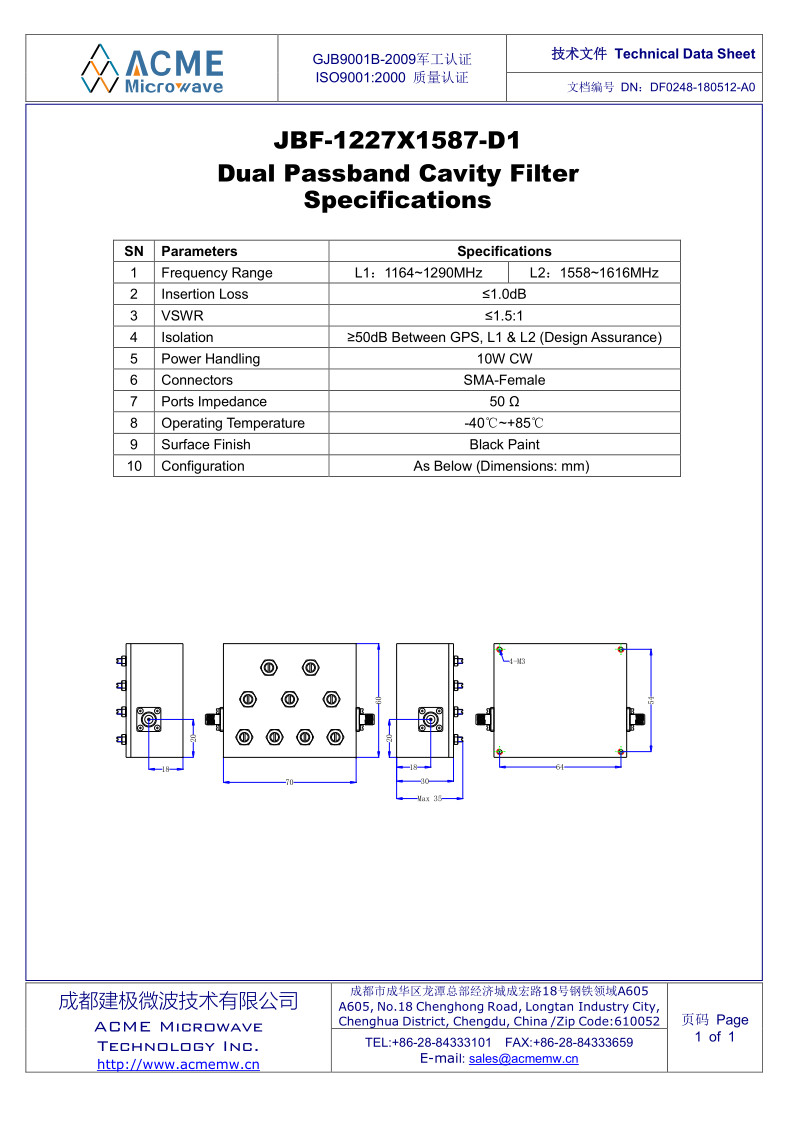 JBF-1227X1587-D1_Daul Passband Cavity Filter