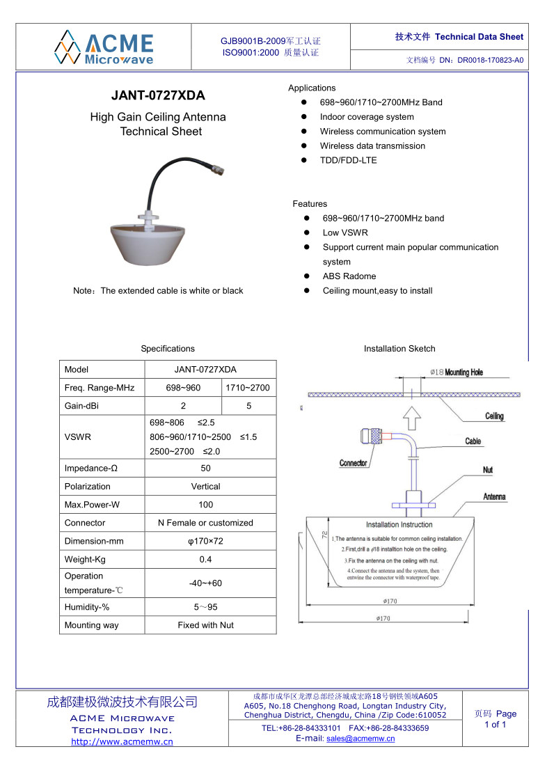 JANT-100SGAH20S_Standard Gain Horn Antenna