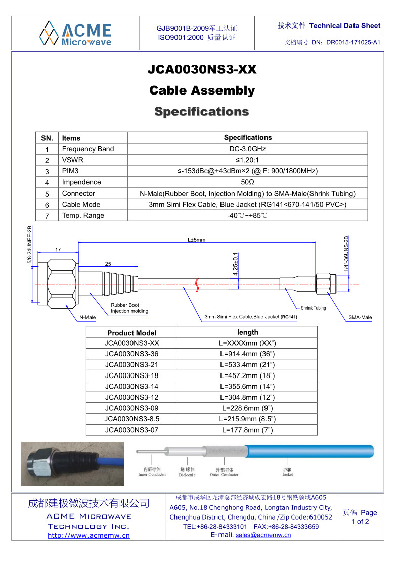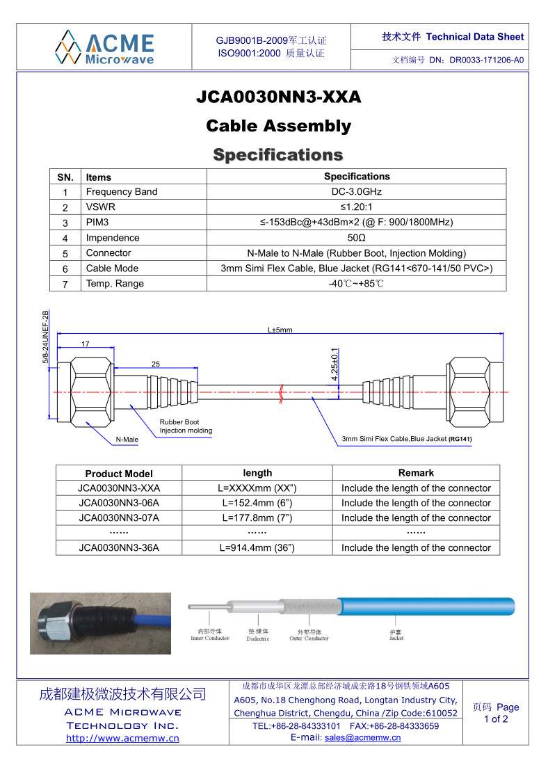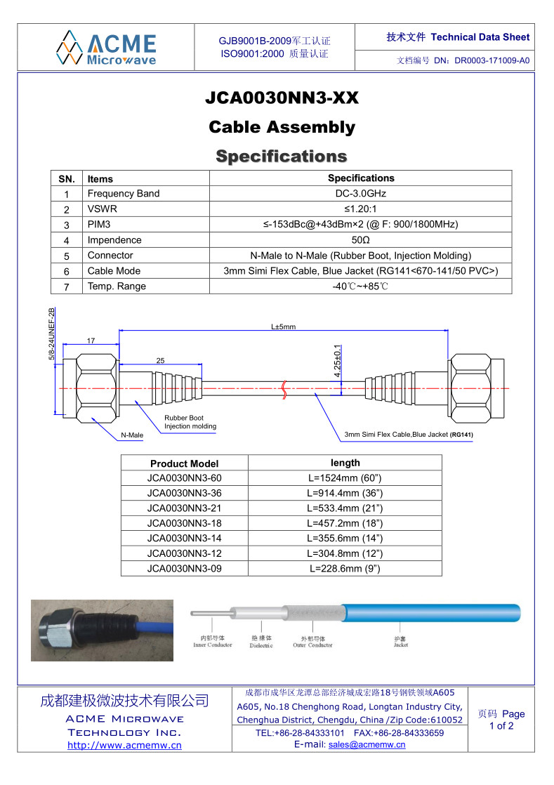 JCA0030NMNM-RG58-XXm_Cable Assembly